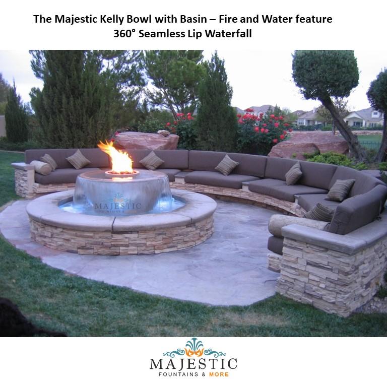 The Majestic Kelly Bowl and Basin 360 spill in GFRC Outdoor Fire and Water Feature Fountain
