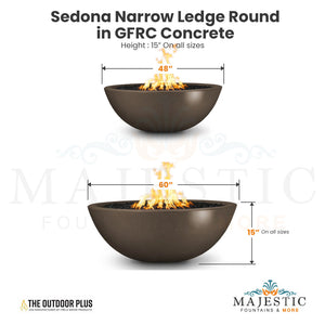 The Outdoor Plus Sedona Narrow Ledge Round Fire Pit in GFRC Concrete is a beautiful high-end fire pit that is perfect for both, residential and commercial projects. it is a gorgeous round piece with a Narrow ledge that will look great in any patio, yard, or terrace. The Narrow ledge makes it sleek and stylish. It'll bring the magic of fire to endless evenings with family and friends.
