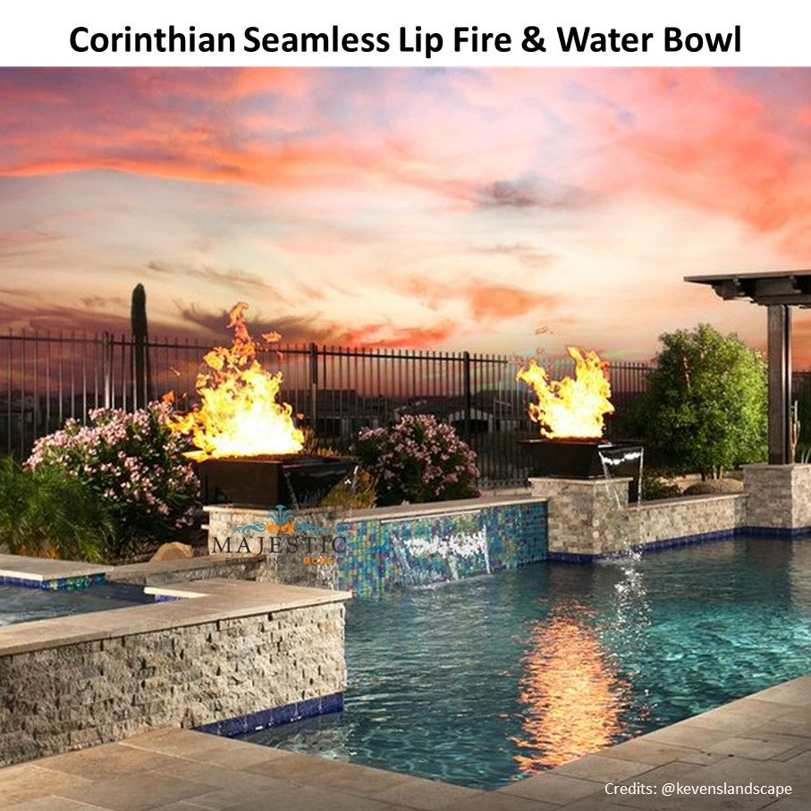 Corinthian Seamless Lip Fire _ Water Bowl Artisan Series - Majestic Fountains Corinthian Seamless Lip Fire and Water Bowl Artisan Series in Metal by Grand Effects - Majestic Fountains & More