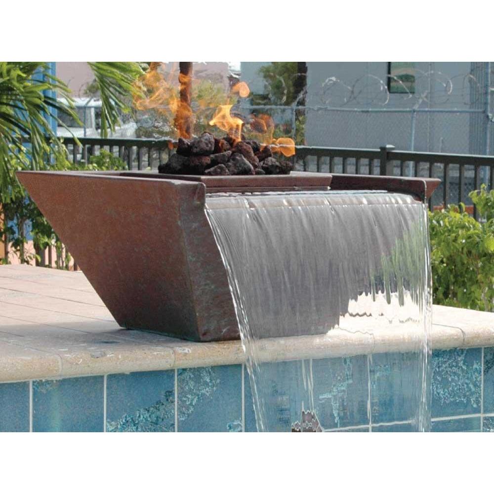 We love the wide seamless water drop on this. Its very smooth flowing. Great Fire & water combo bowl.