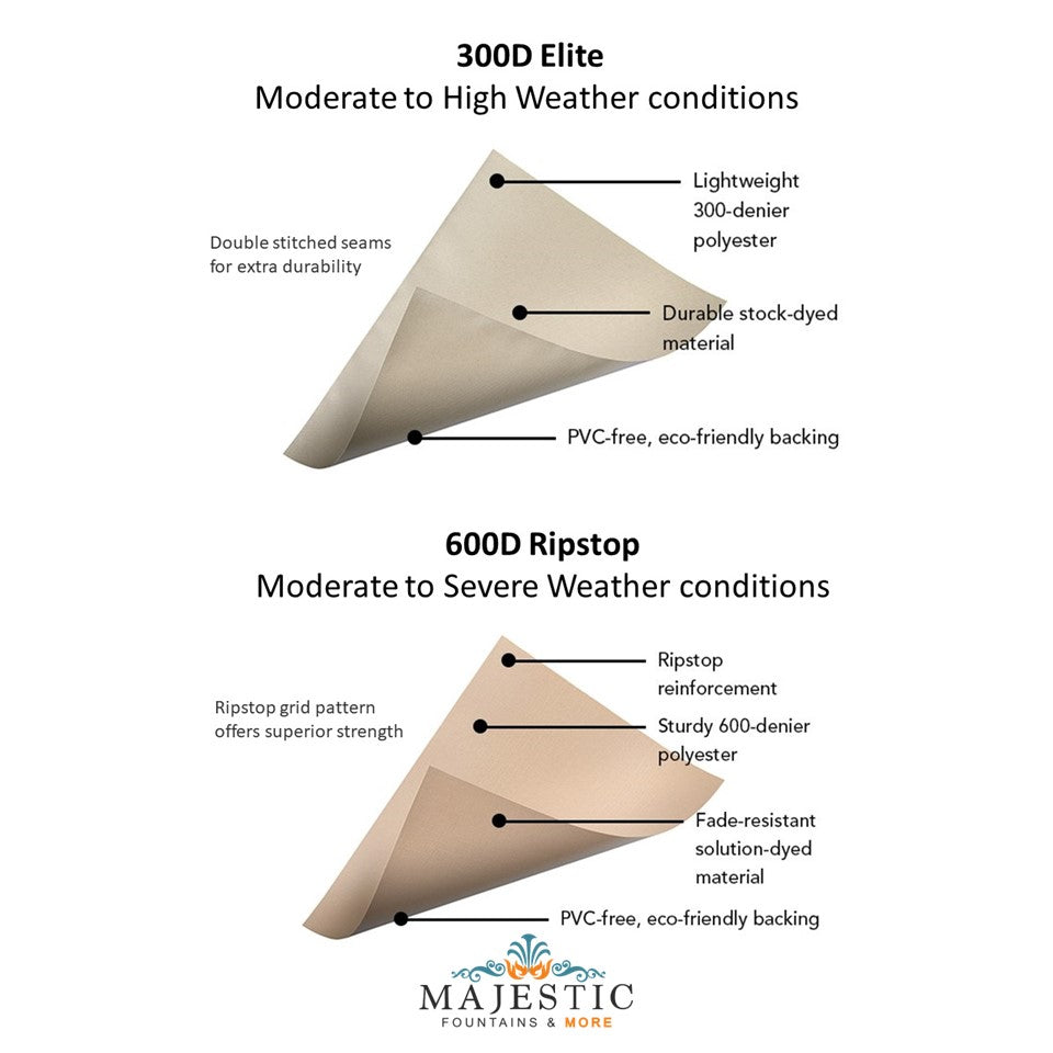 Protect your outdoor feature from rain, snow, ice and debris with this woven polyethylene cover. Tough enough to last through all seasons and weather conditions. Our Outdoor Fountain, Sculpture, Water Feature Cover is best used to Winterize and protect your fountain in the harsh winter.