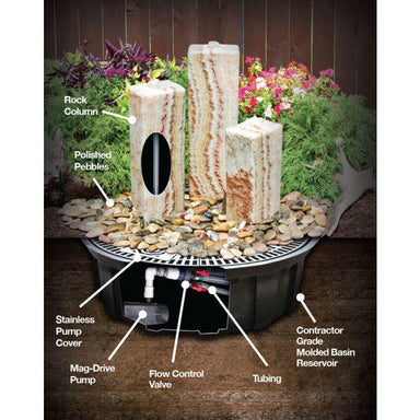 • Natural Rock fountains: Natural Rock fountains, also commonly known as natural stone fountains or real stone fountains are very popular type of outdoor fountains. Basalt fountains, Granite fountains, Onyx fountains as well as Marble fountains are all Natural stone fountains. Each of these stone fountains come in various shapes & sizes and are known for their one-of-a-kind and unique appearance.