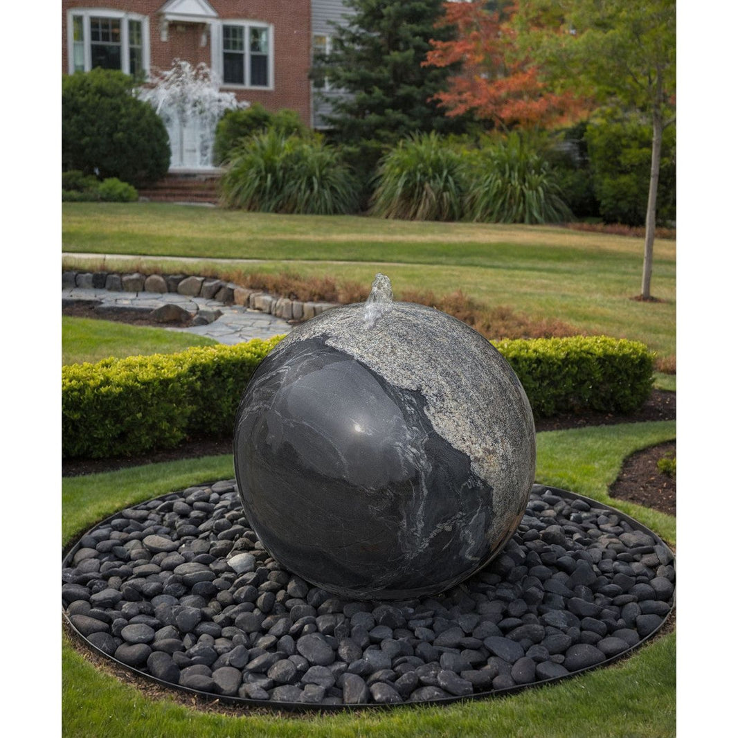 30" Black Flower Granite Sphere Fountain - Complete Fountain Kit