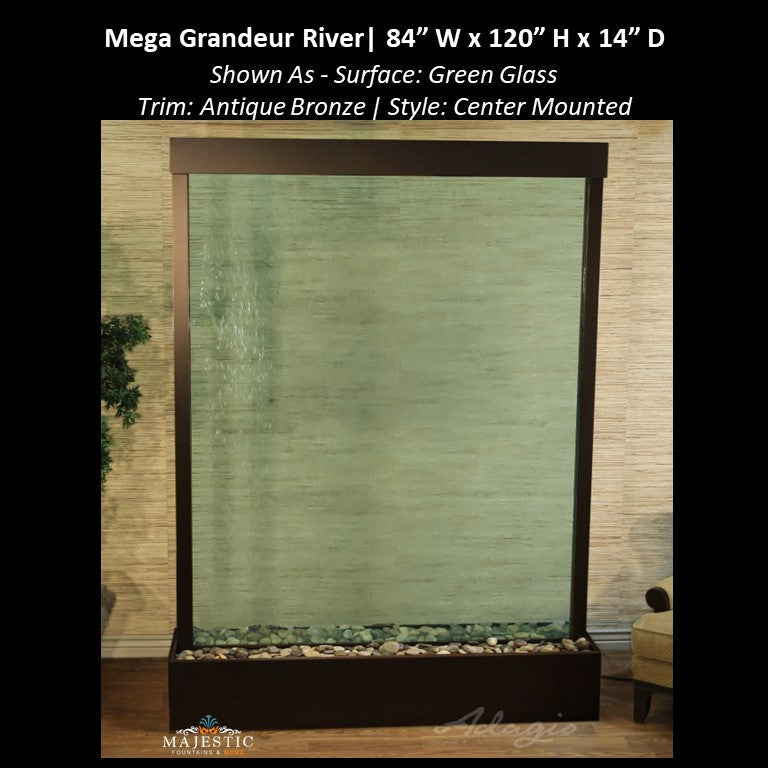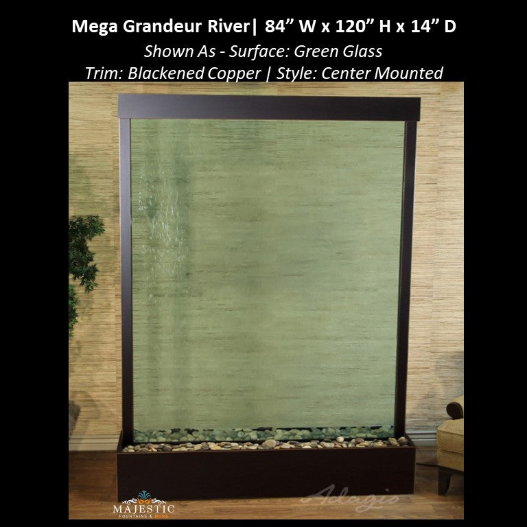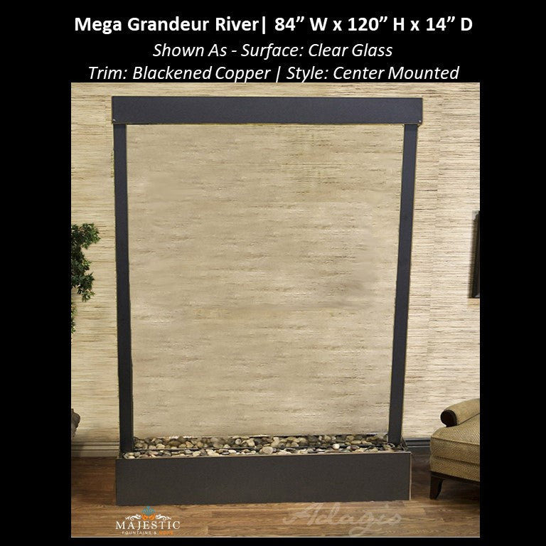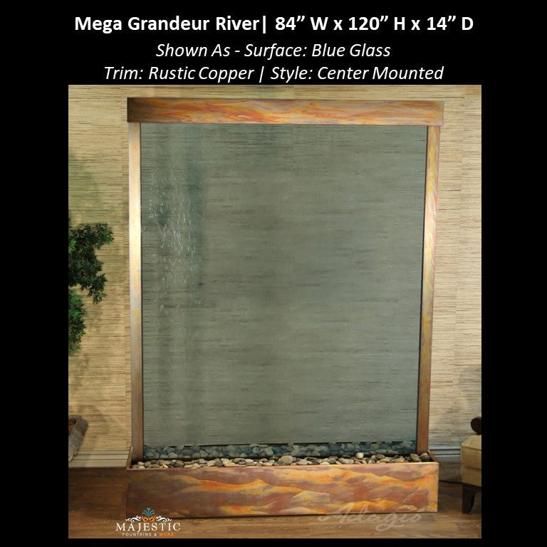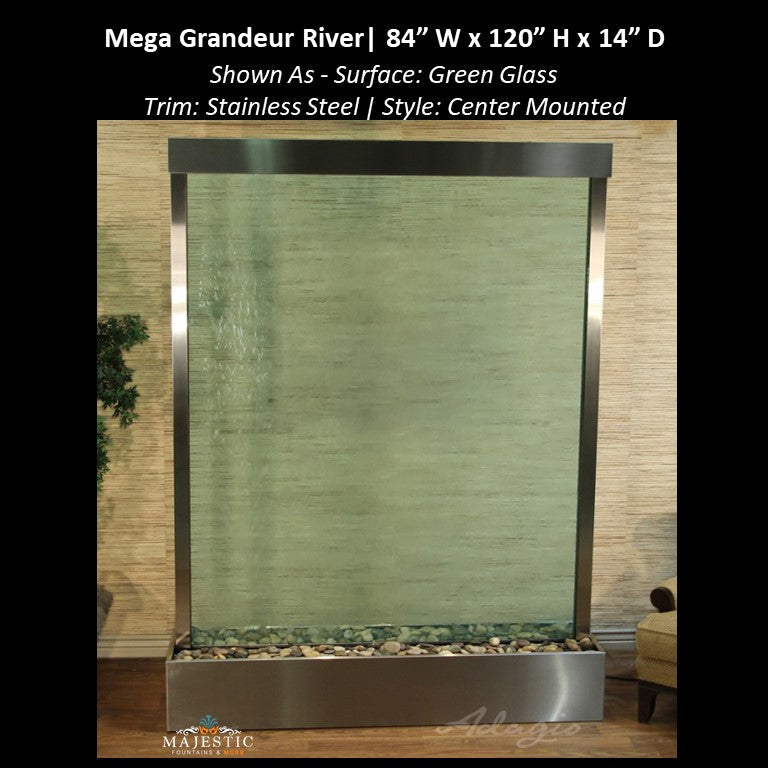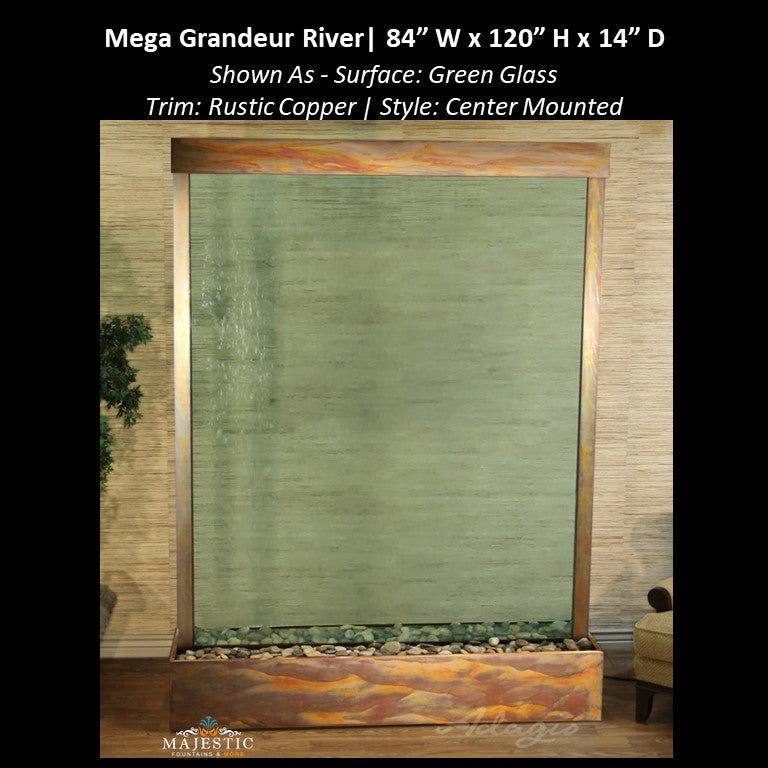 Encapsulation: Encapsulates the waterfall between your chosen surface option and an additional Clear Glass Surface. This allows for the Waterfall to be seen and heard but not touched as the water flow is contained between the two surface options. A wider Trim is used for this to hold the two Surfaces. The water is sealed on the top waterflow section but can still be accessed via the bottom tray. Encapsulation is only available for Center Mounted free standing floor fountains.