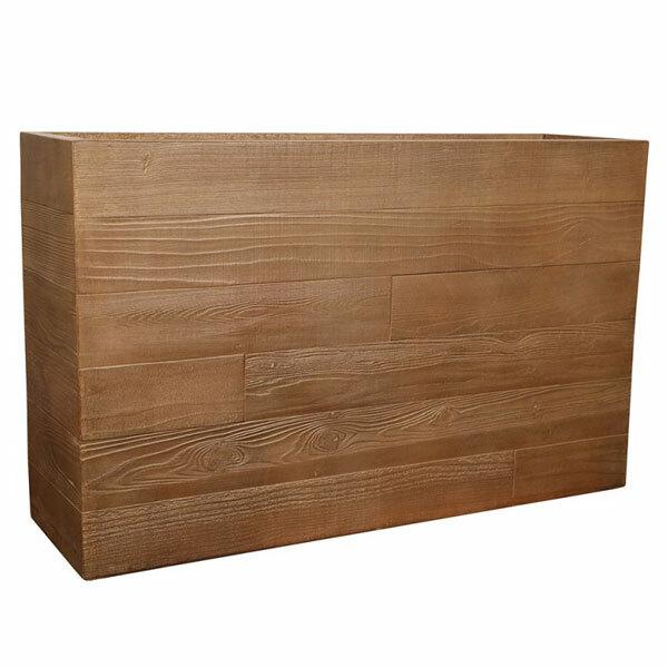The Planters come in three lengths and feature a rustic, wood-look horizontal slat patterning. Handcrafted from lightweight GFRC, this tall rectangular planter works well as a container for deeper rooting shrubs or flowers. The Aspen planter family includes several other size options and comes in a large selection of finish options.