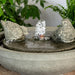 Care & Maintenance: We suggest that birdbath/fountain tops not be left outside in the winter. Once the top fills with water/snow and freezes, the top may crack. All birdbath/fountain bases, bench legs, and statuary should be raised up off the ground in winter so they will not freeze to the ground surface. Ideally, a fountain should be stored indoors in the winter, away from the elements. However, if a fountain bowl must be left outside, remove all pumps, rubber stoppers, drain pipes, finials, and small components, and cover the top with burlap or any absorbent material (old blanket/towel) and then wrap with dark plastic, making sure that water does not accumulate in the basin and freeze. Fountain pumps, finials, and other small components should be stored indoors. Check the fountain periodically to ensure that the cover is secure and water is not accumulating in any fountain component.