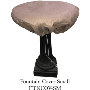 Care & Maintenance: We suggest that birdbath/fountain tops not be left outside in the winter. Once the top fills with water/snow and freezes, the top may crack. All birdbath/fountain bases, bench legs, and statuary should be raised up off the ground in winter so they will not freeze to the ground surface. Ideally, a fountain should be stored indoors in the winter, away from the elements. However, if a fountain bowl must be left outside, remove all pumps, rubber stoppers, drain pipes, finials, and small components, and cover the top with burlap or any absorbent material (old blanket/towel) and then wrap with dark plastic, making sure that water does not accumulate in the basin and freeze. Fountain pumps, finials, and other small components should be stored indoors. Check the fountain periodically to ensure that the cover is secure and water is not accumulating in any fountain component.