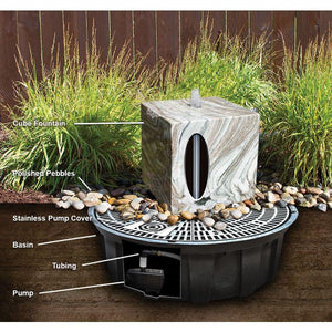 • Kit includes: Round Fountain Basin - 36”D X 16”H | 60 gal capacity, 800 gph Mag-Drive pump, flow control valve, plumbing, & tubing