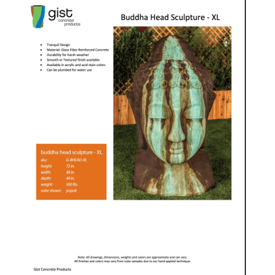 This Buddha Head Sculpture XL is a large version of the Buddha's head. It is an Impressive 6 Feet tall! Use it as a central landscaping ornament to set the mood to serenity. It is made from Fiber Stone resin which is lighter than concrete.