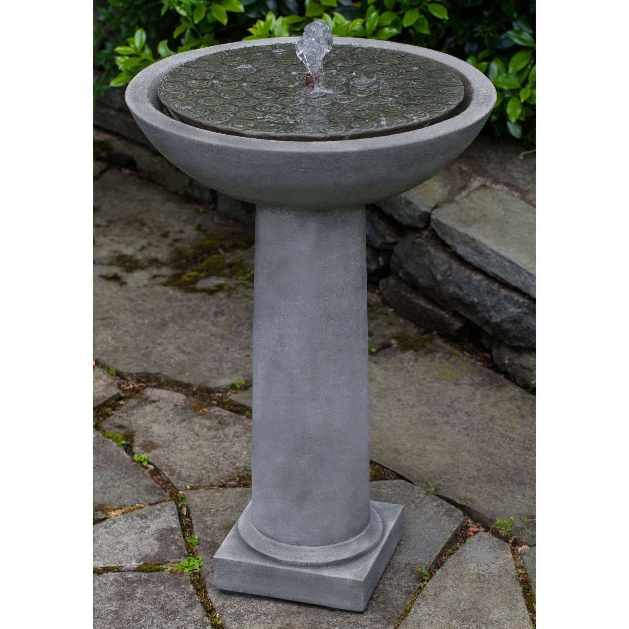 Doubling as a peaceful haven for our feathered friends to rest their wings and wet their whistles, Campania's Cirrus Birdbath Water Fountain features a stylishly simple basin adorned with soft spirals perched atop a classic round pedestal and square base. Made with fiber-reinforced cast stone and available in a wide variety of color options, this fountain will enchant both senses of sight and hearing. Place it right smack in the center or off to the side of your garden, yard, or patio. Wherever you place it, this elegantly simple and compact water feature will transform the area into a tranquil oasis where you can relax, unwind and be one with nature.