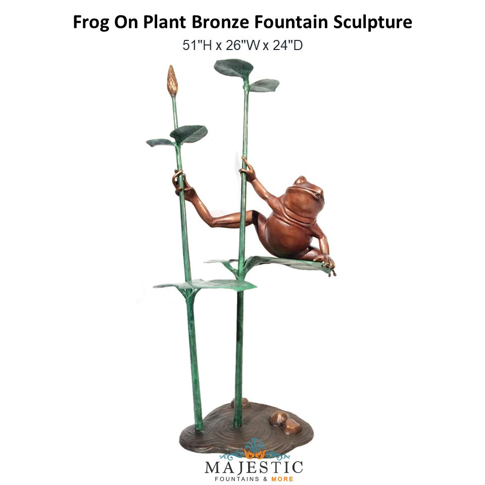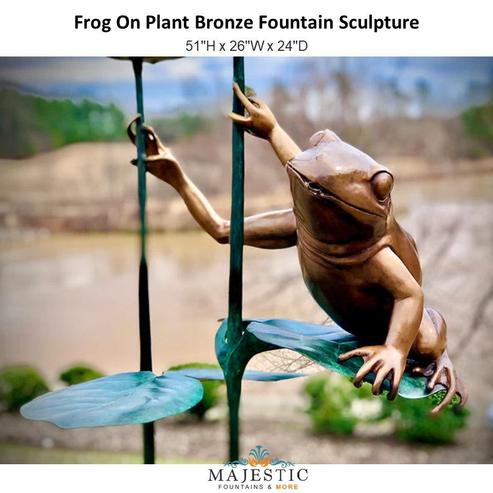 The Frog On Plant is an animal fountain sculpture. It adds a touch of wildlife to your outdoor space and is sure to enhance the beauty of your landscape. This fountain sculpture is constructed of Bronze material.