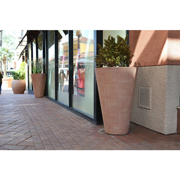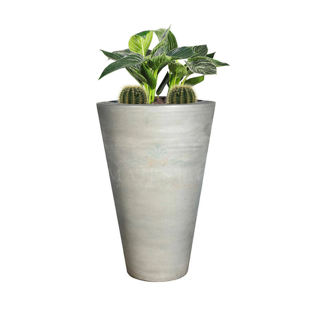 Featuring precise angles and a slender, sleek design, our Geo Round Sleek Vase Planters come in 4 sizes and work well in modern outdoor settings. These tall and large planters are handcrafted from lightweight GFRC in many different finish options. The Geo Planter Series also includes several other contemporary container shapes.