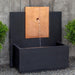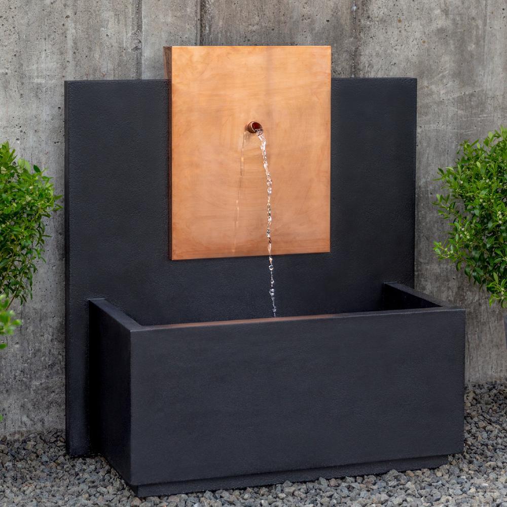 The copper faceplate overlaying the MC3 Fountain's handsome cast stone wall transforms this garden fountain into a one-of-a-kind showpiece. Placement against a wall surrounded by flowers and greenery accentuates the strong lines and modern shape of this contemporary water feature. Create your own personal sanctuary with the addition of this alluring outdoor fountain.