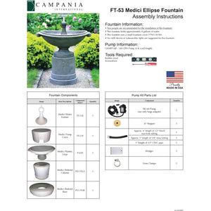 Medici Ellipse Fountain in Cast Stone by Campania International FT-53