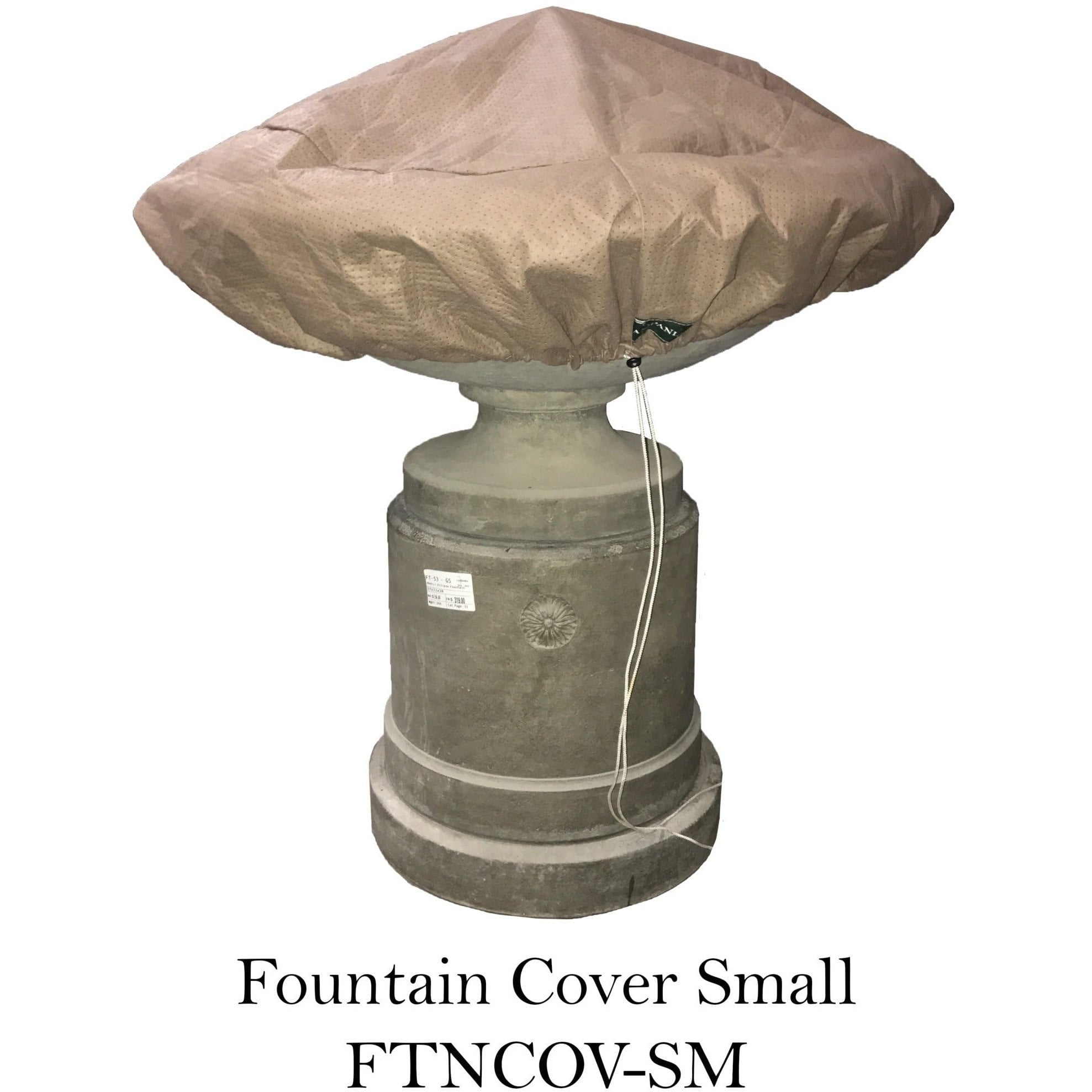 Care & Maintenance: We suggest that birdbath/fountain tops not be left outside in the winter. Once the top fills with water/snow and freezes, the top may crack. All birdbath/fountain bases, bench legs, and statuary should be raised up off the ground in winter so they will not freeze to the ground surface. Ideally, a fountain should be stored indoors in the winter, away from the elements. However, if a fountain bowl must be left outside, remove all pumps, rubber stoppers, drain pipes, finials, and small components, and cover the top with burlap or any absorbent material (old blanket/towel) and then wrap with dark plastic, making sure that water does not accumulate in the basin and freeze. Fountain pumps, finials, and other small components should be stored indoors. Check the fountain periodically to ensure that the cover is secure and water is not accumulating in any fountain component.