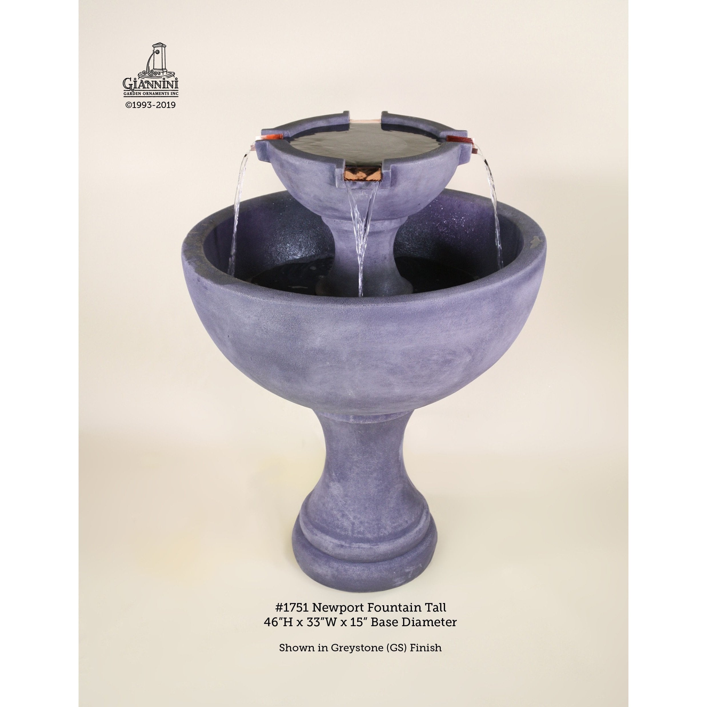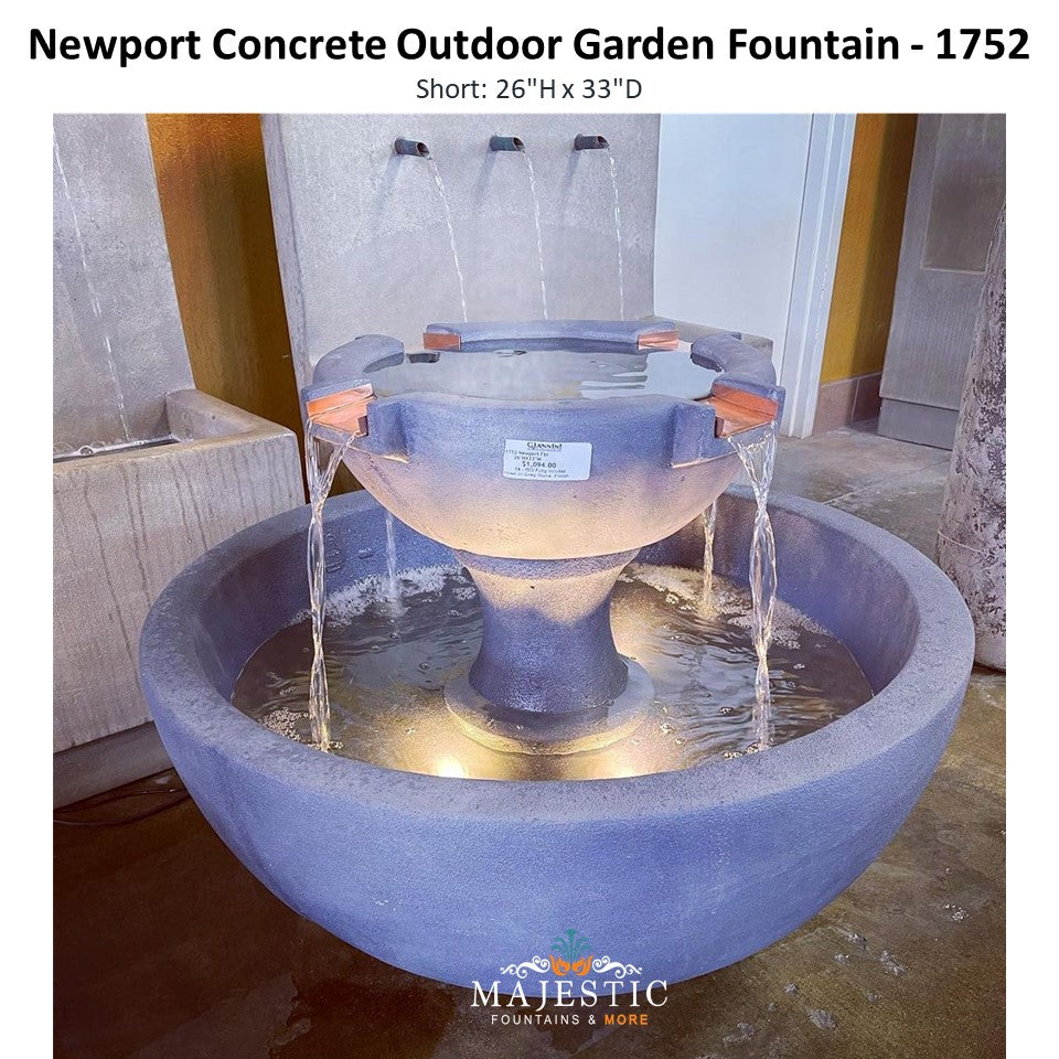 Newport Concrete Outdoor Garden Fountain- Tall or Short - 1751-1752 — Majestic Fountains and More