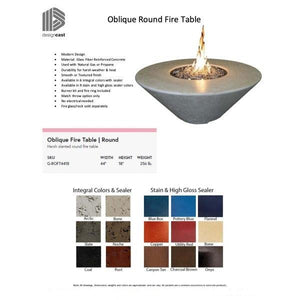Enhance your outdoor oasis with the Oblique Round Fire Table, a sleek and contemporary addition to any environment. Compatible with both natural gas and propane, this exquisite table is expertly crafted from Glass Fiber Reinforced Concrete to withstand all climates, ensuring year-round beauty in your outdoor space.