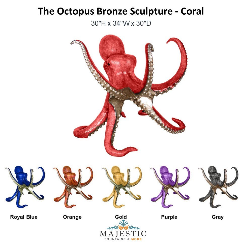 The Octopus is a small sculpture with intricate, hand forged details. It is sure to uplift the look of any space. You can use the octopus sculpture on its own or as a table base. It is constructed of bronze metal, but is available in various amazing patina finishes to match the vibe of your space.