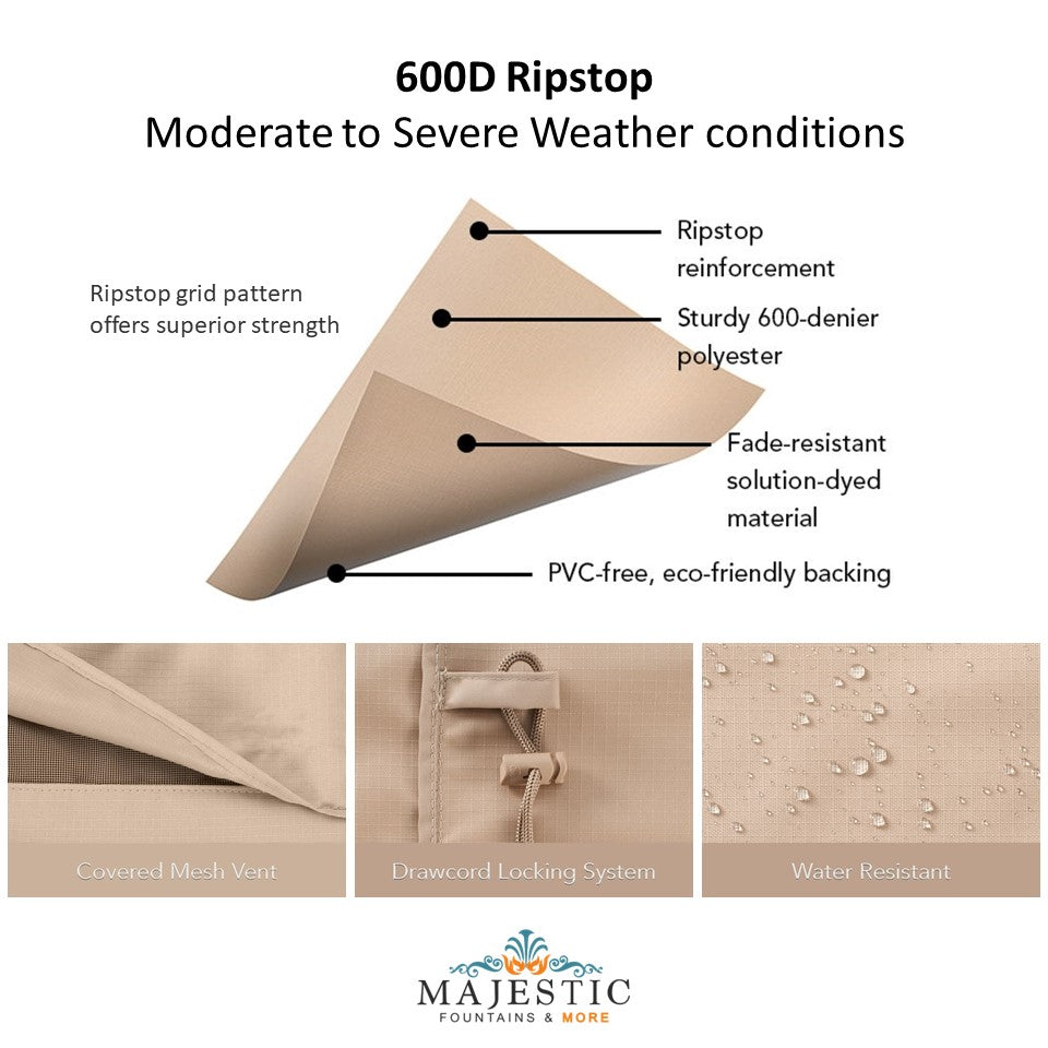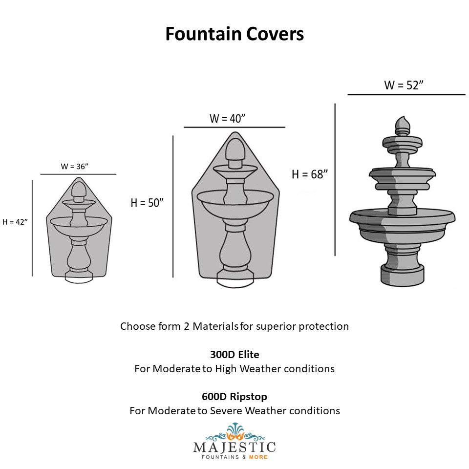 Protect your outdoor feature from rain, snow, ice and debris with this woven polyethylene cover. Tough enough to last through all seasons and weather conditions. Our Outdoor Fountain, Sculpture, Water Feature Cover is best used to Winterize and protect your fountain in the harsh winter.