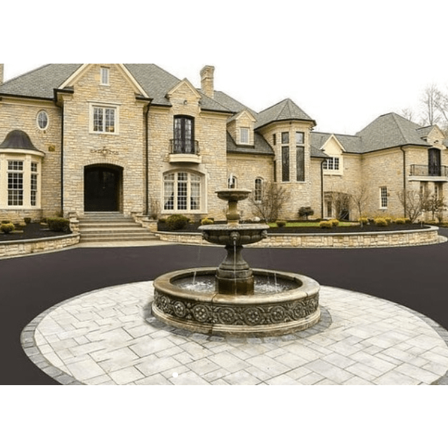 This fountain spills water into the top-tier bowl, and then the water changes its flow as it gets pushed out through the lion heads and down into the concrete basin. This creates three different water sounds and ultimately offers more than just a visual spectacle. No plumbing is required for this model. However, a refilling system is recommended to keep the water flow steady for longer periods of time.