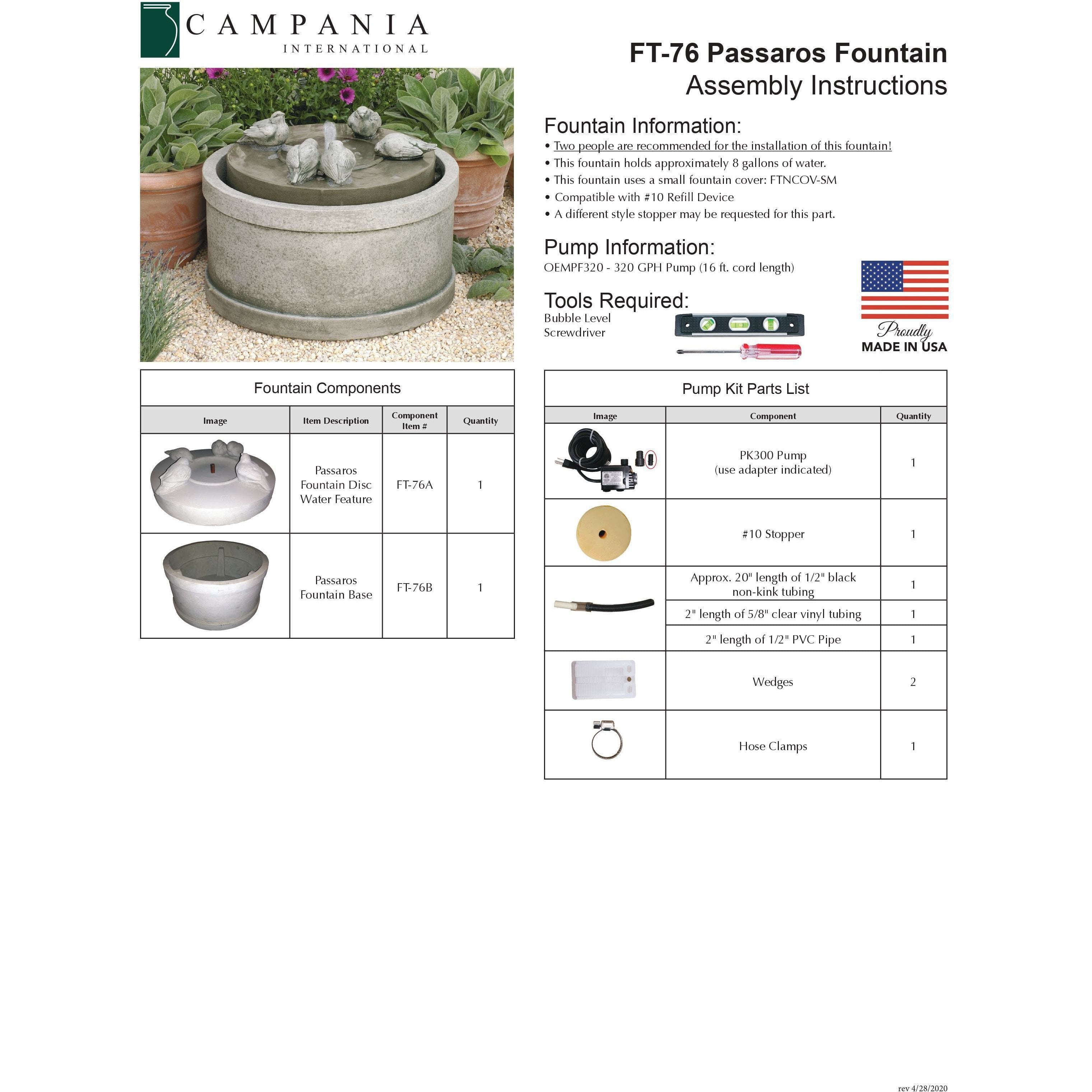 Passaros Fountain in Cast Stone by Campania International FT-76