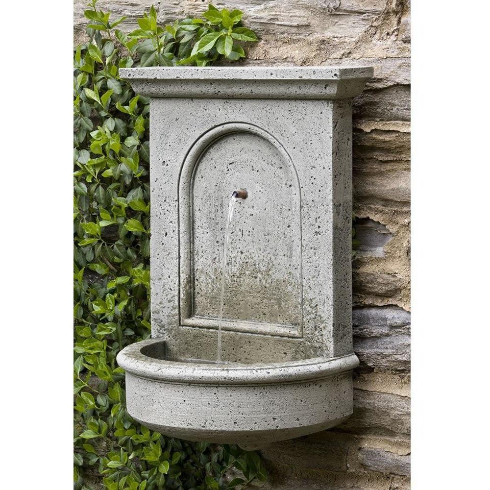 Featuring a back plate with an arch inset, sitting atop a half-moon basin, the Portico Wall Outdoor Water Fountain is simply designed yet classic in appeal. As the water flows down gently, a soothing and peaceful environment is created for you and your guests to enjoy. Manufactured with fiber reinforced cast stone concrete with a wide variety of color options, the Portico Wall Outdoor Water Fountain is made to last.