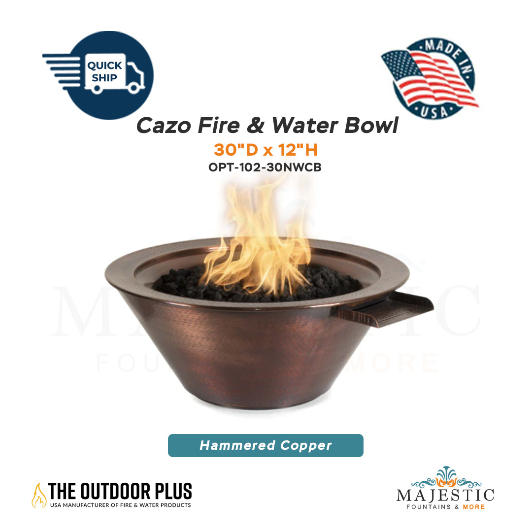The Outdoor Plus Cazo 30"D x 12"H Fire & Water Bowl in Hammered Copper - QUICKSHIP