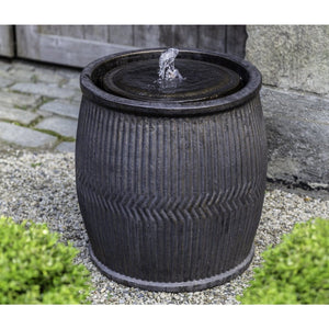The Bronze Rain Barrel Fountain is a completely modern spin on the down-to-earth countrified rain barrel. Designed with a traditional shape and sharp, jagged vertical lines throughout, this small outdoor fountain is a fresh and edgy reinvention of the classic rain barrel design. Perfect for patio and garden settings.