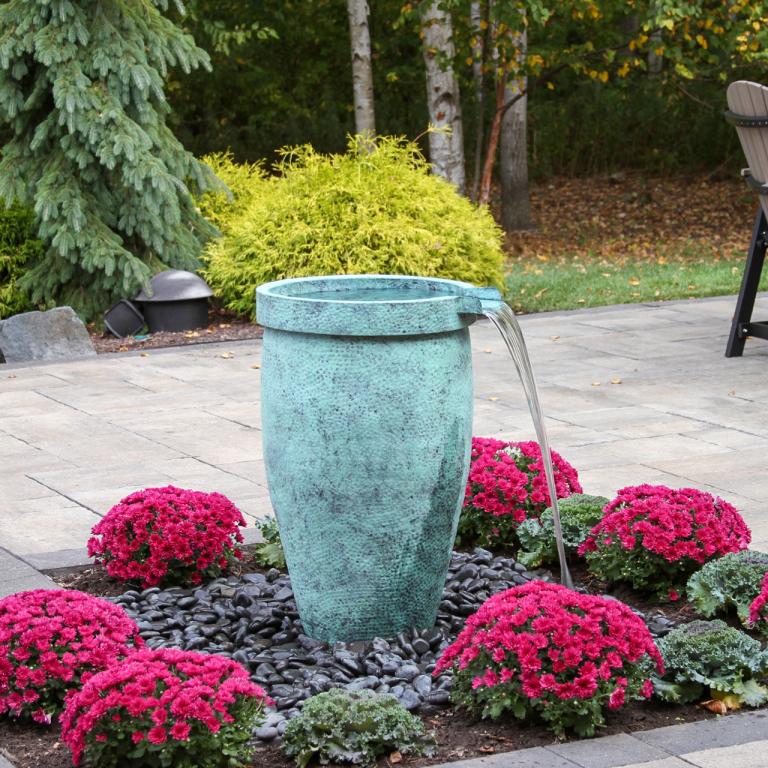 Elevate your outdoor space with our Round Aqua Patina Brass Single Urn - Complete Fountain Kit. The stunning aqua patina finish adds a touch of elegance to your garden. Transform any dull backyard into a tranquil oasis with the soothing sound of water. Easy to set up and maintain.