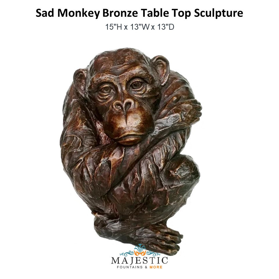 Sad Monkey Bronze Table Top Sculpture — Majestic Fountains and More