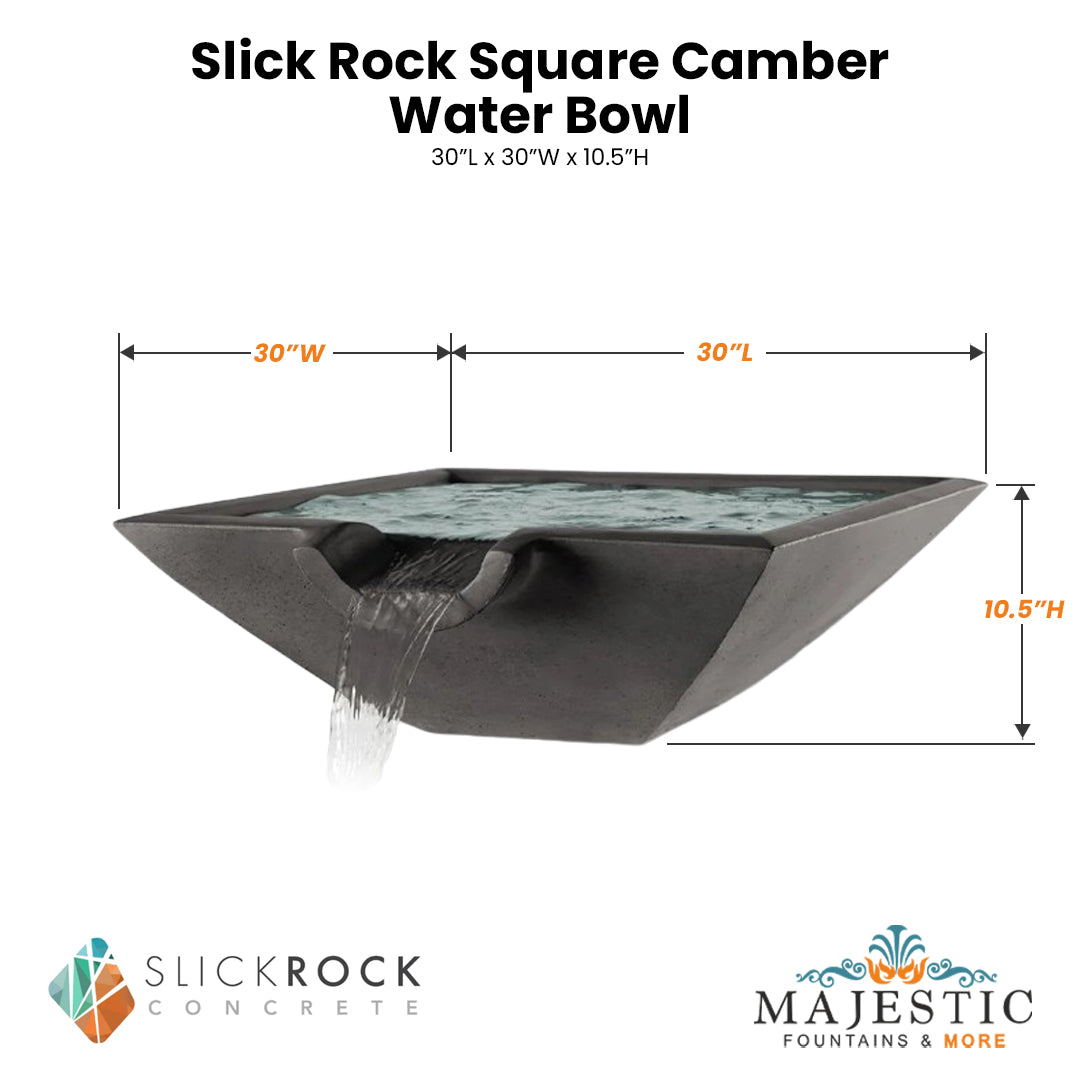 Slick Rock Square Camber Water Bowl - in GFRC Concrete - Specification Sheet