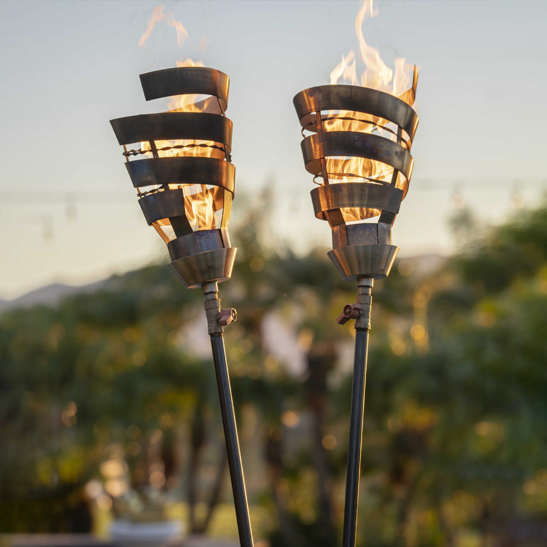 Illuminate your backyard with the Outdoor Plus Modern Torches for an exciting backyard entertainment experience. Enjoy the contemporary design of the SPIRAL Fire Torch in Stainless steel. Each of our TOP Torches are individually hand crafted. They are made from high grade stainless steel for durability against heat & natures elements. Compatible with Natural Gas and Liquid Propane. Choose form two torch base options - The Original TOP base or TOP-LITE base