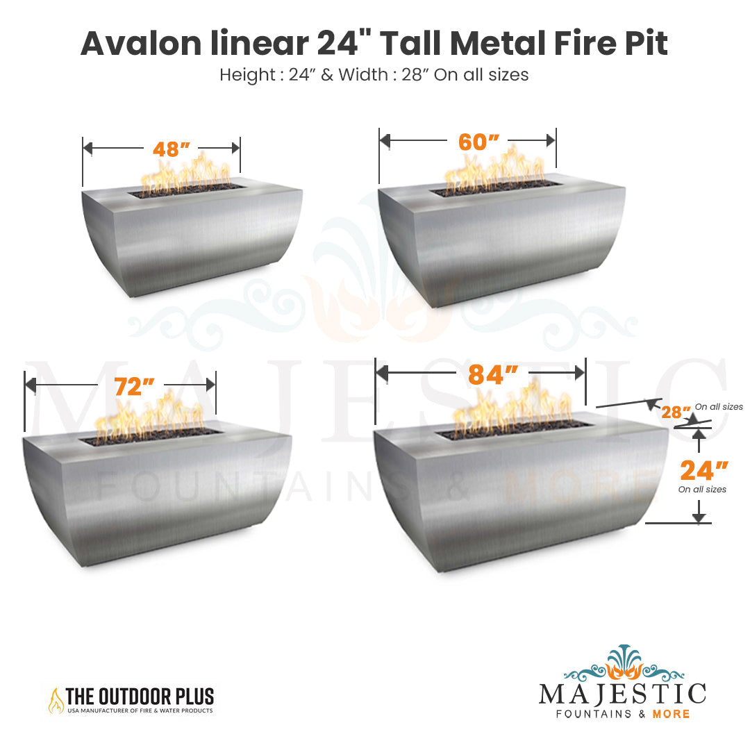 The Outdoor Plus Avalon Linear Fire Pit by The Outdoor Plus is a sleek and stylish fire pit with tapered bottom. Available in 4 different sizes this fire pit stands 24" Tall. The shape of this fire pit makes it unique and attractive. Constructed of High-quality Steel, this fire pit is strong and durable. Choose from 4 different sizes and various Powder coat finishes available.