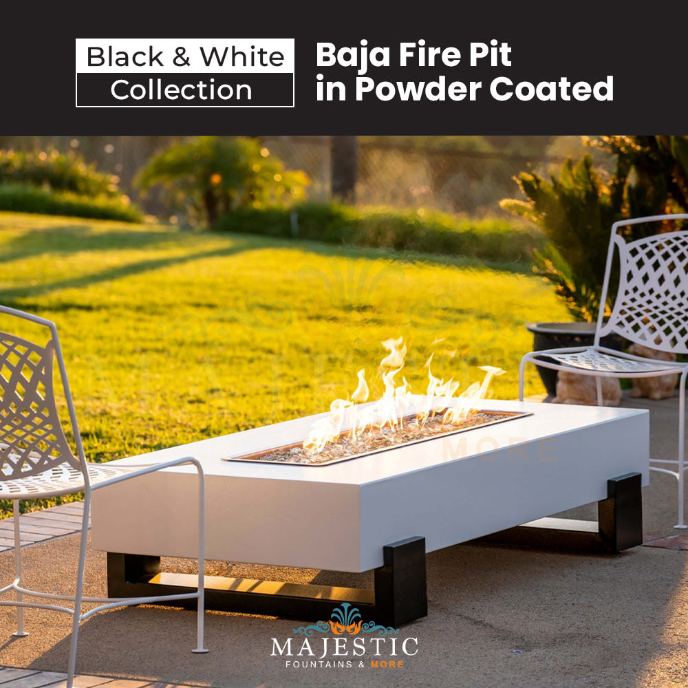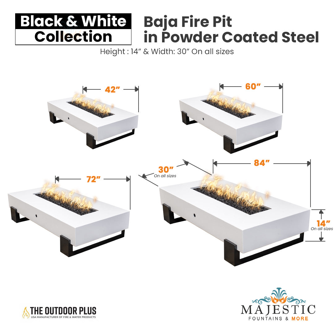 The Outdoor Plus Baja Fire Pit is crafted from durable powder coated metal and features a unique and modern rectangular design. Available in four sizes, the fire pit table is perfect for any outdoor setting. Enjoy great flames with the linear burner for an unforgettable experience. All Fire tables from the Black & White Collection feature a Powder Coated White Top and a Black Base.