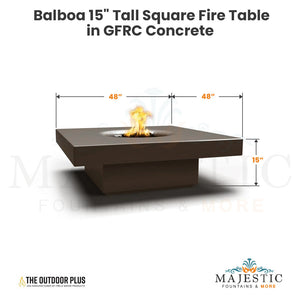 TOP Balboa Square Fire Table in GFRC Concrete - Specification Sheet