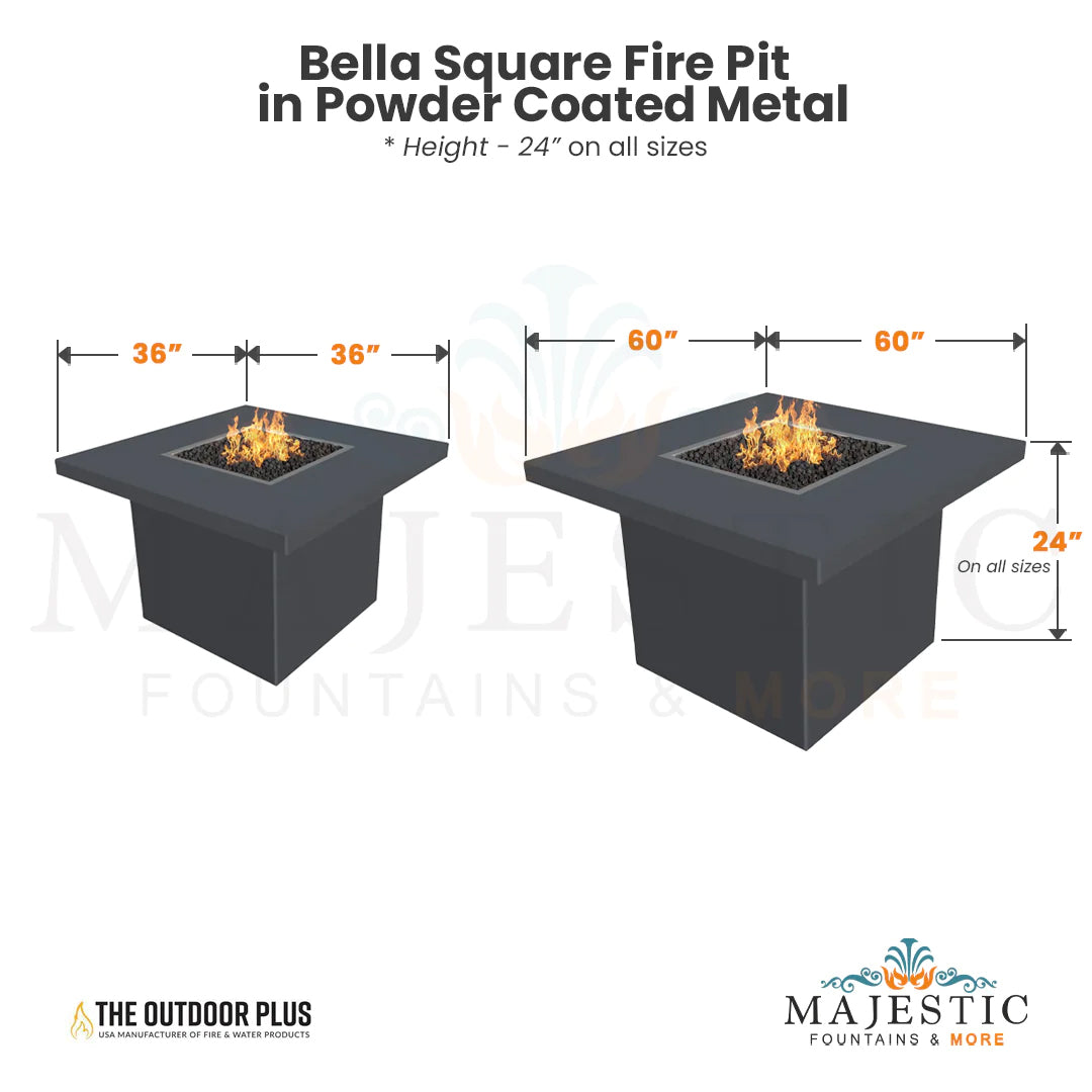 The Outdoor Plus Bella Square Fire Pit in Powder Coated Metal + Free Cover