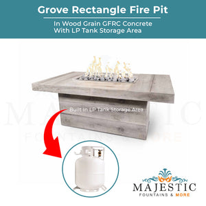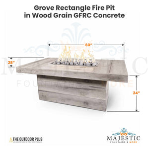 The Outdoor Plus Grove Rectangle Fire Pit in Wood Grain Concrete + Free Cover