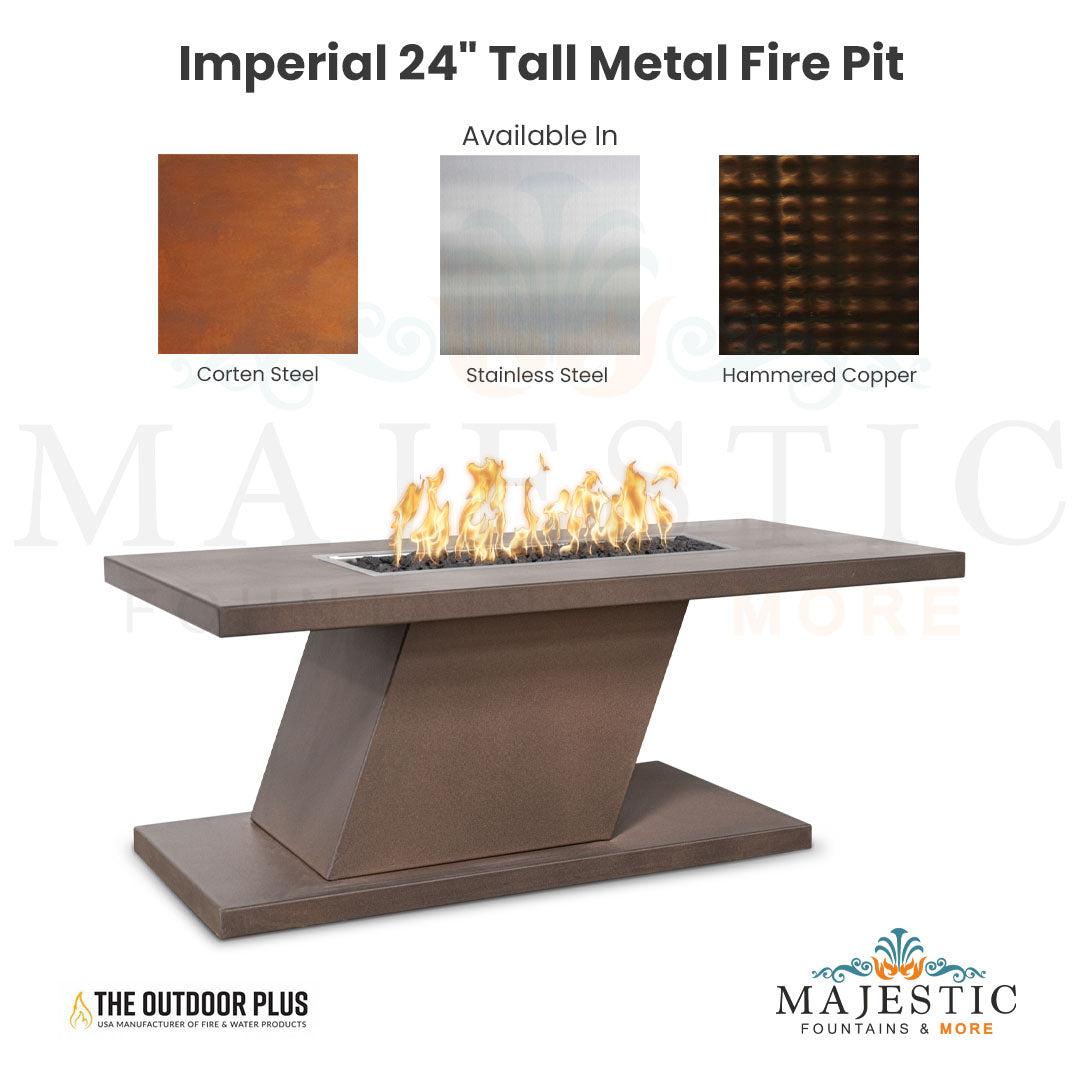 The Imperial Fire Pit by The Outdoor Plus is a contemporary fire pit that looks stunning. Available in 2 different sizes this fire pit stands 24" Tall. The shape of this fire pit makes it unique and attractive. This amazing Fire pit is available in Corten Steel, Stainless steel & Hammered Copper.