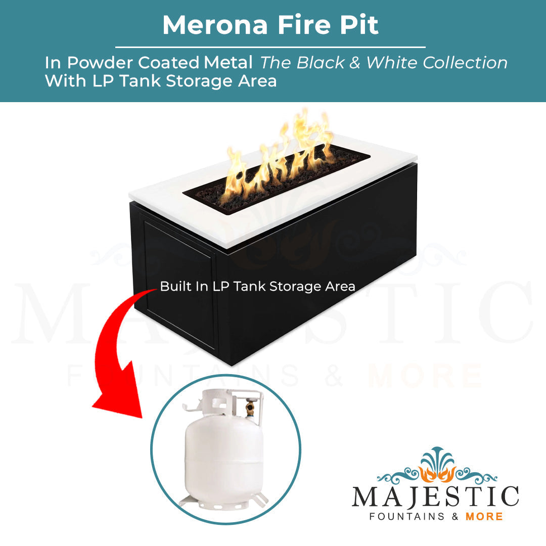 The Outdoor Plus Merona Fire Pit is designed for those who seek elegance and quality. Crafted from powder coated metal, this fire pit features a chic black and white finish that will upgrade any outdoor space. Enjoy natural gas and liquid propane compatibility, plus an access door for propane tank storage. With manual and automatic ignition, this fire pit is the perfect addition to any evening.