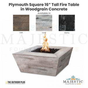 The Outdoor Plus Plymouth Square 16" Tall Fire Table in Woodgrain Concrete + Free Cover