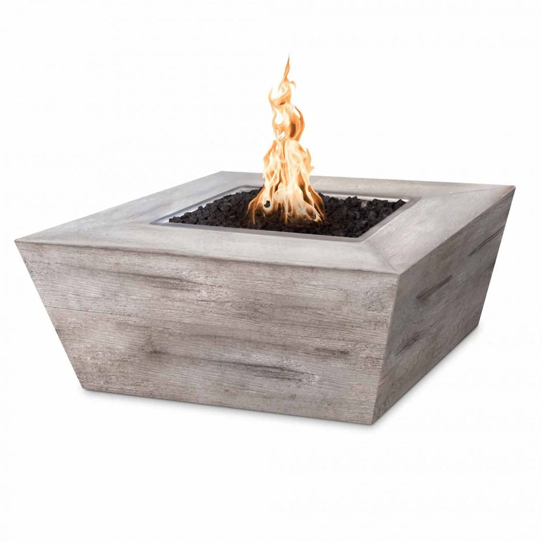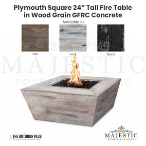 The Outdoor Plus Plymouth Square 24" Tall Fire Table in Woodgrain Concrete + Free Cover