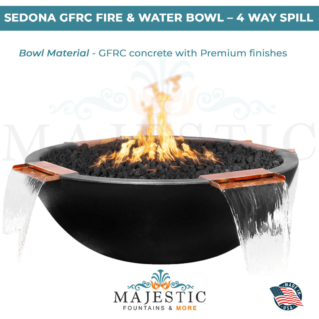 The Sedona 4-Way Spill Fire & Water bowl, constructed with high-quality GFRC makes it durable and strong. Artistically designed, the 4-way spill allows water flow from 4 directions. The water spillage from four sides looks beautiful and attractive.
