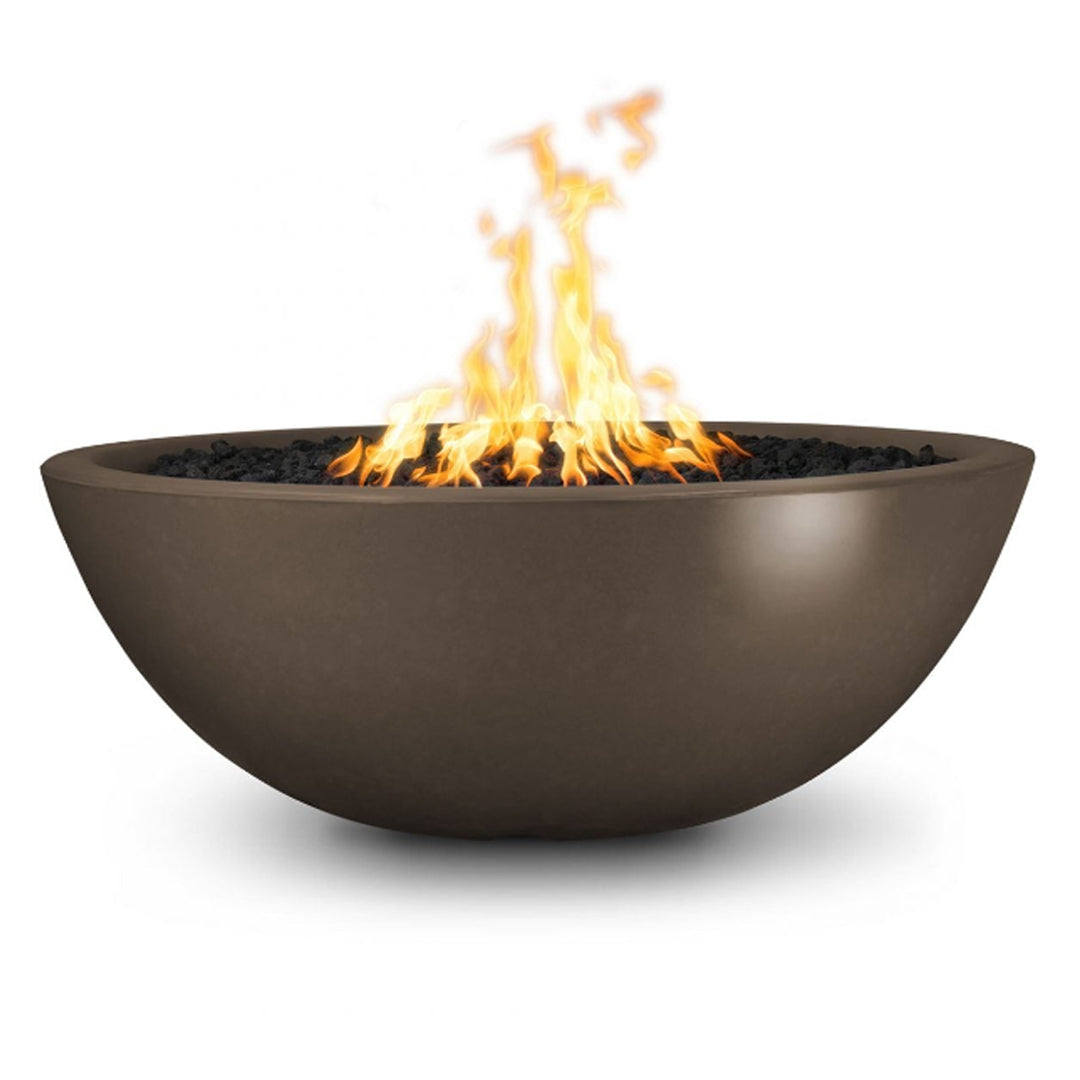 The Outdoor Plus Sedona Narrow Ledge Round Fire Pit in GFRC Concrete + Free Cover