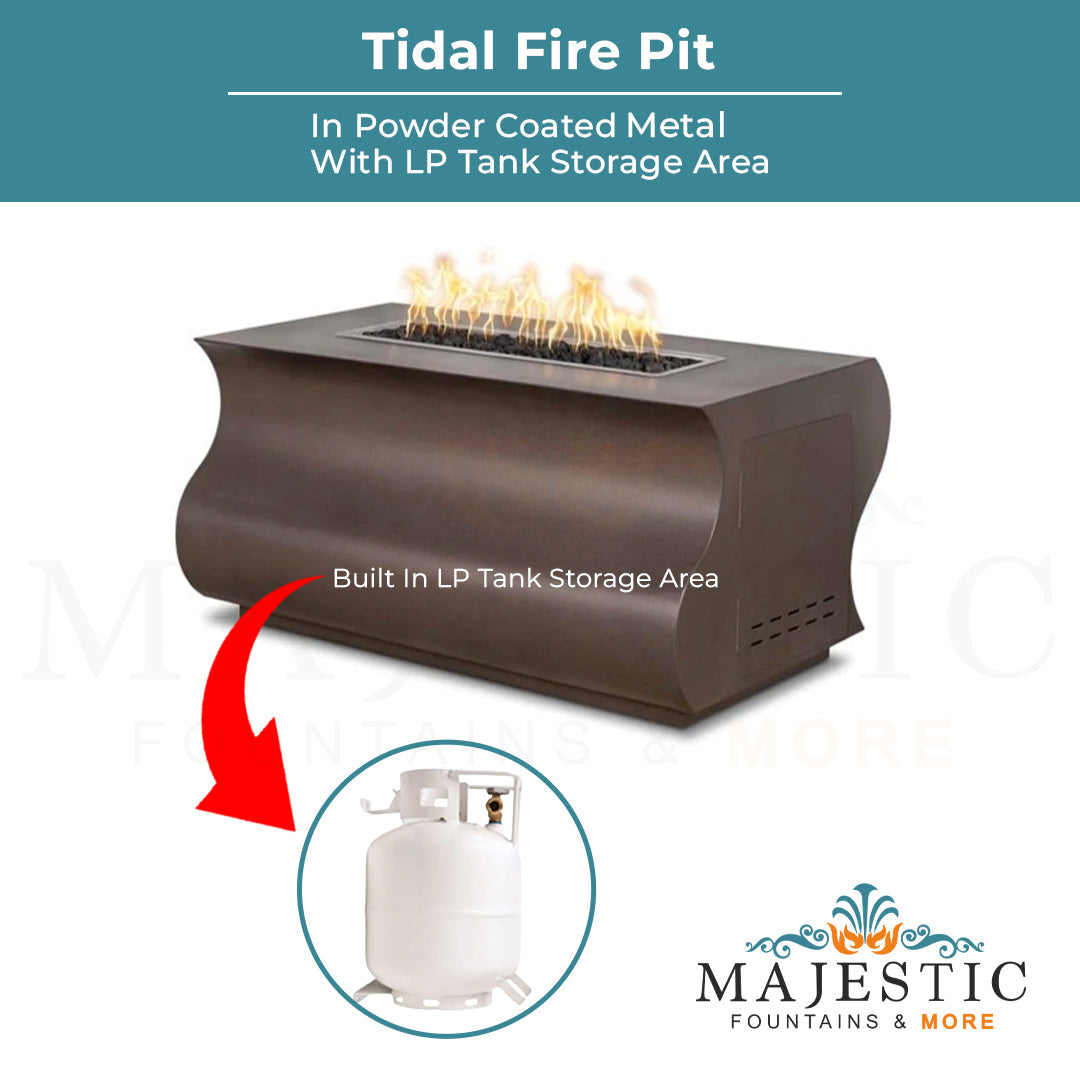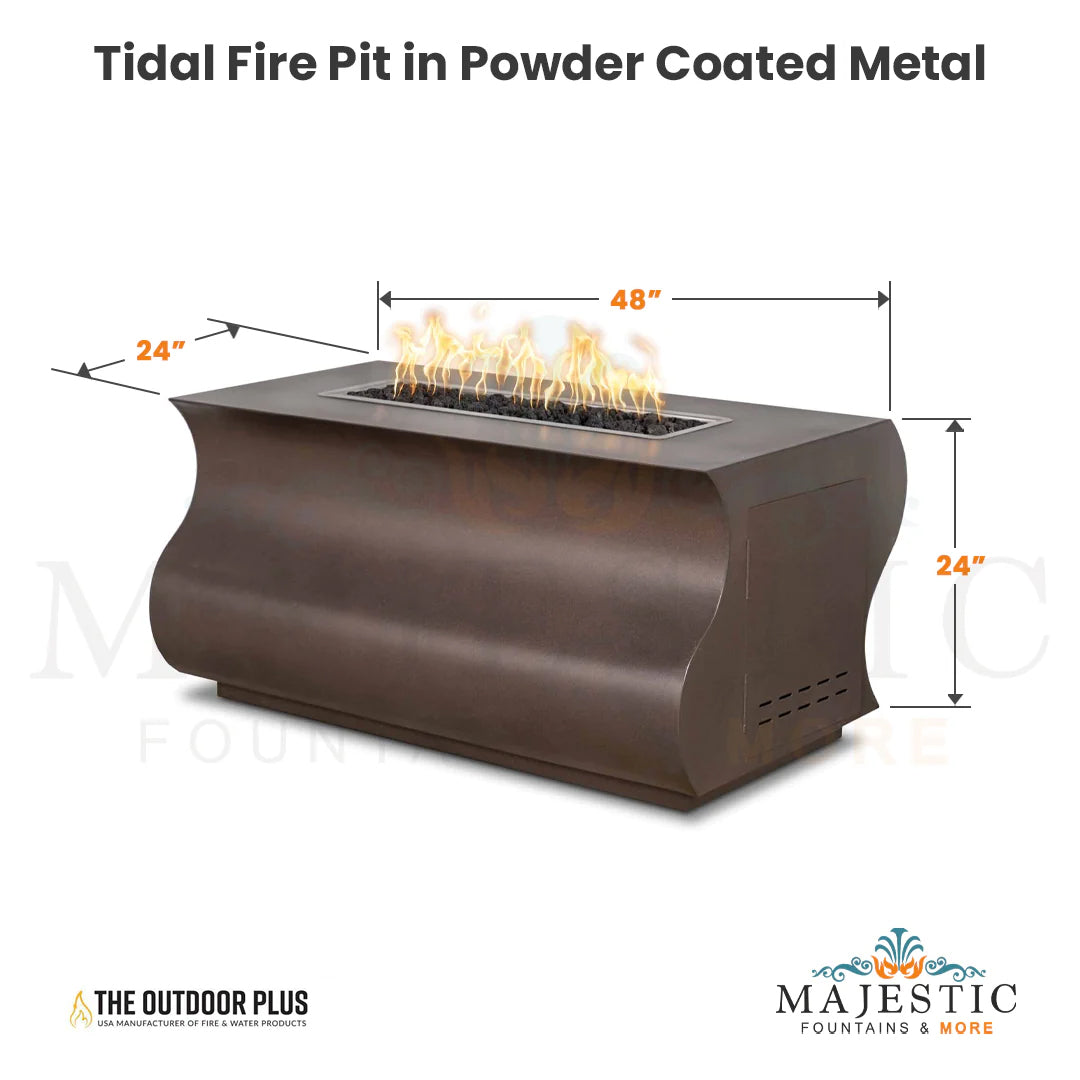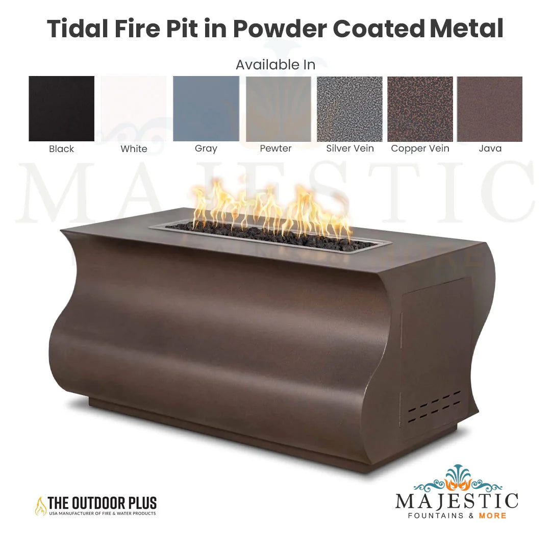 The Outdoor Plus Tidal Fire Pit in Powder Coated Metal is a beautiful fire pit. As the name suggests, its an elegant wave shaped firepit table constructed of high grade metal with powder coat finish available in amazing colors. It is compatible with Natural gas as well as liquid propane.