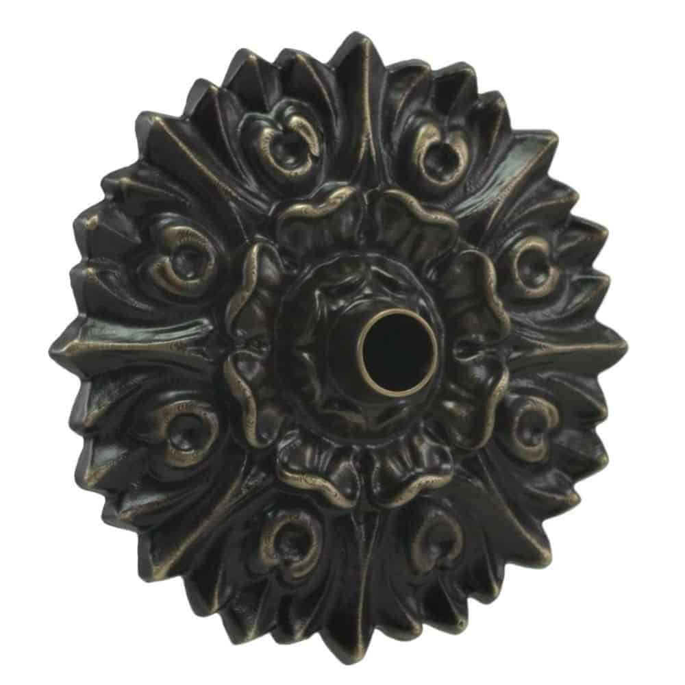 Reminiscent of the gorgeous and serene French gardens, the Versailles Spout is a thinner, larger-sized bronze emitter with copper backplate boasting a traditional floral pattern. It is a perfect emitter for projects that call for water projection dropping into a pool, spa or fountain.