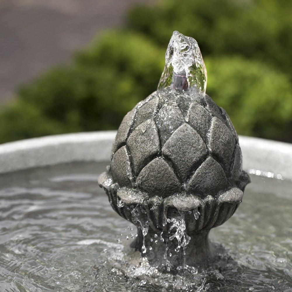 Despite standing less than three feet tall, the Williamsburg Chiswell Garden Water Fountain creates a lasting impact with its elegant design and dynamic water imagery. It features a pineapple-shaped finial that pours water into the bowl that stands on a pedestal. Made with fiber-reinforced cast stone and is available in a wide variety of finish options.
