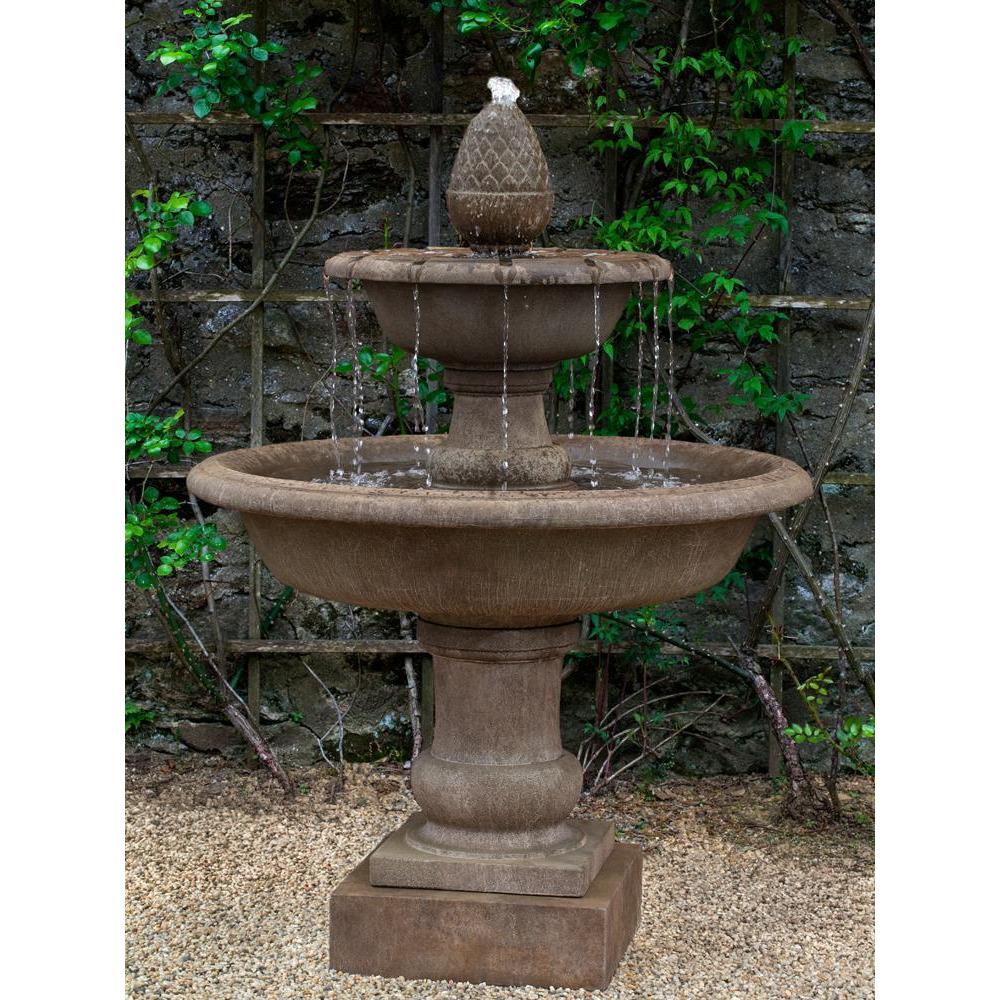 Two tiers of water and a pineapple finial give the Wiltshire Tiered Outdoor Fountain an impressive, classic look. Held up with a classic pedestal and square base, this outdoor water feature will let you enjoy both a resplendent visual display and a soothing acoustic created by gently flowing water.