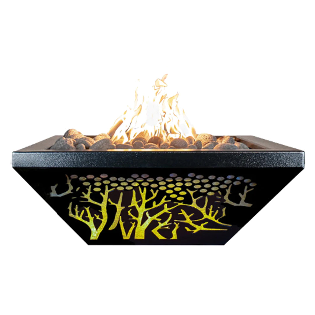 The Outdoor Plus Wonderland Fire Bowl is a stunning masterpiece! It is constructed of great-quality metal and features a powder coat finish that has amazing carvings which looks like a forest. The Jungle theme design looks marvelous. This square fire bowl is available in 3 sizes. You can choose from the Mach-lit or Electronic ignition option at your convenience.