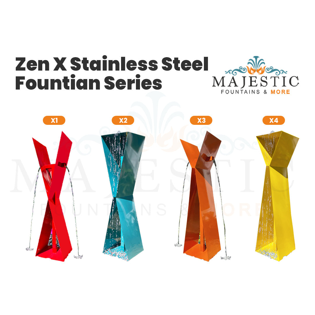 Made of durable stainless steel, the X2 fountain is available in 4 vibrant powder coated finishes and a corten steel variant, this timeless fountain is perfect for any modern space.